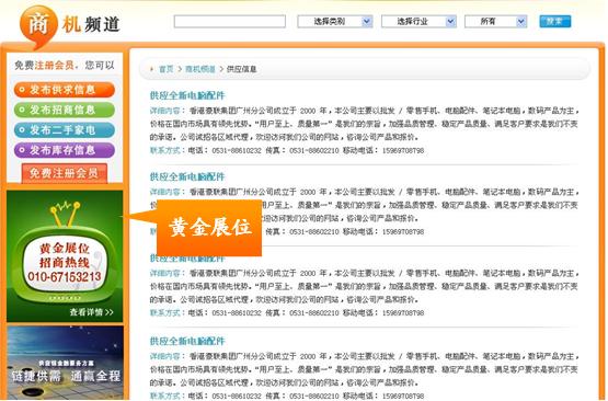 ·商机频道二级列表页黄金展位展示